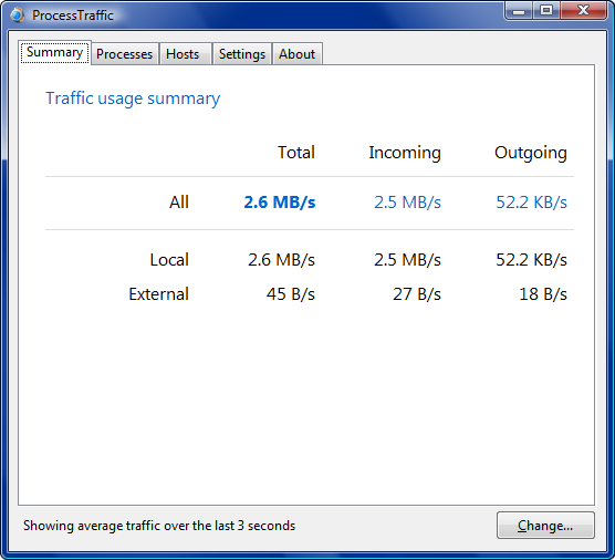Or, if you just want to know which program is using lots of traffic, go to Processes: